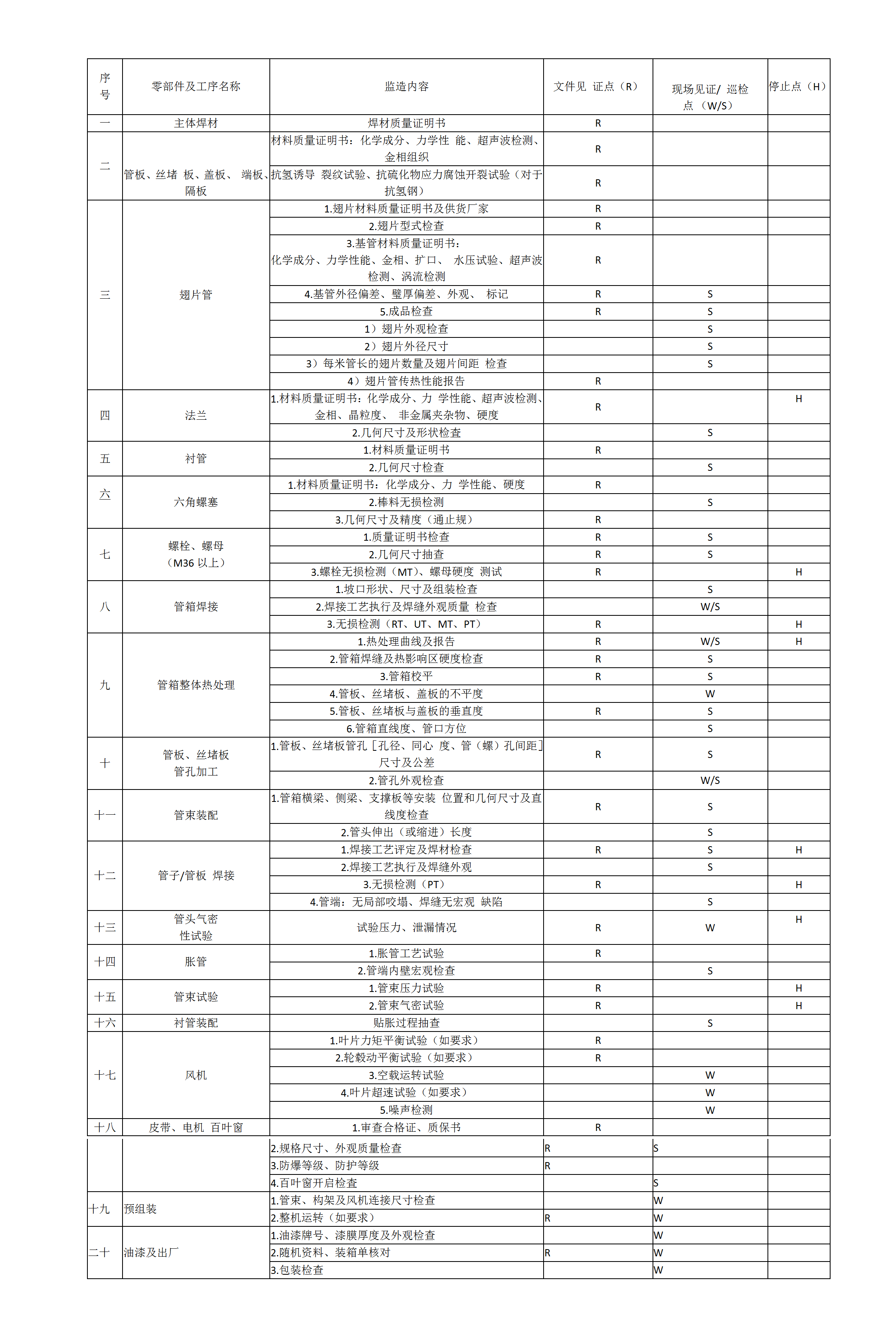 11高壓空冷器駐廠監(jiān)造主要控制點(diǎn)